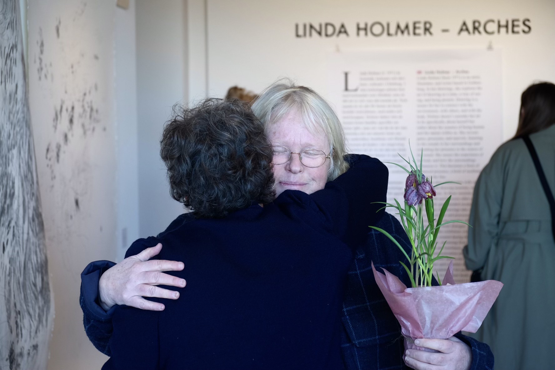 Linda Holmer (f. 1971) är konstnär, tecknare och skribent, verksam i Göteborg. I sina teckningar arbetar hon med tecknandet som tillstånd, som ett sätt att se och vara närvarande på. Tecknandet är ett sätt för henne att knyta kontakt med platsen, med andra och med kroppen. Holmer tänker inte att hennes konst handlar specifikt om henne själv, utan om vad det är att vara människa och om naturen inom oss. Hon undersöker, bearbetar och förundras, lyssnar på ljuden i sin omgivning och sträcker på så vis sin närvaro ända till ljudkällan. Hon känner in upplevelsen av kroppen och hur omgivningen påverkar den. Det här blir som ett slags förstärkt närvaro, en form av meditation förankrad i linjen.